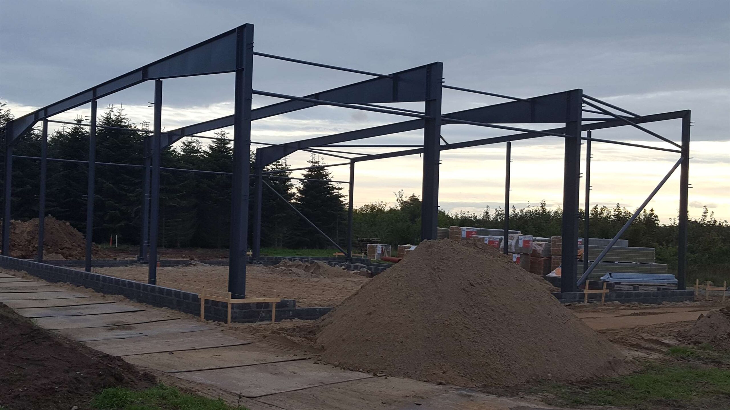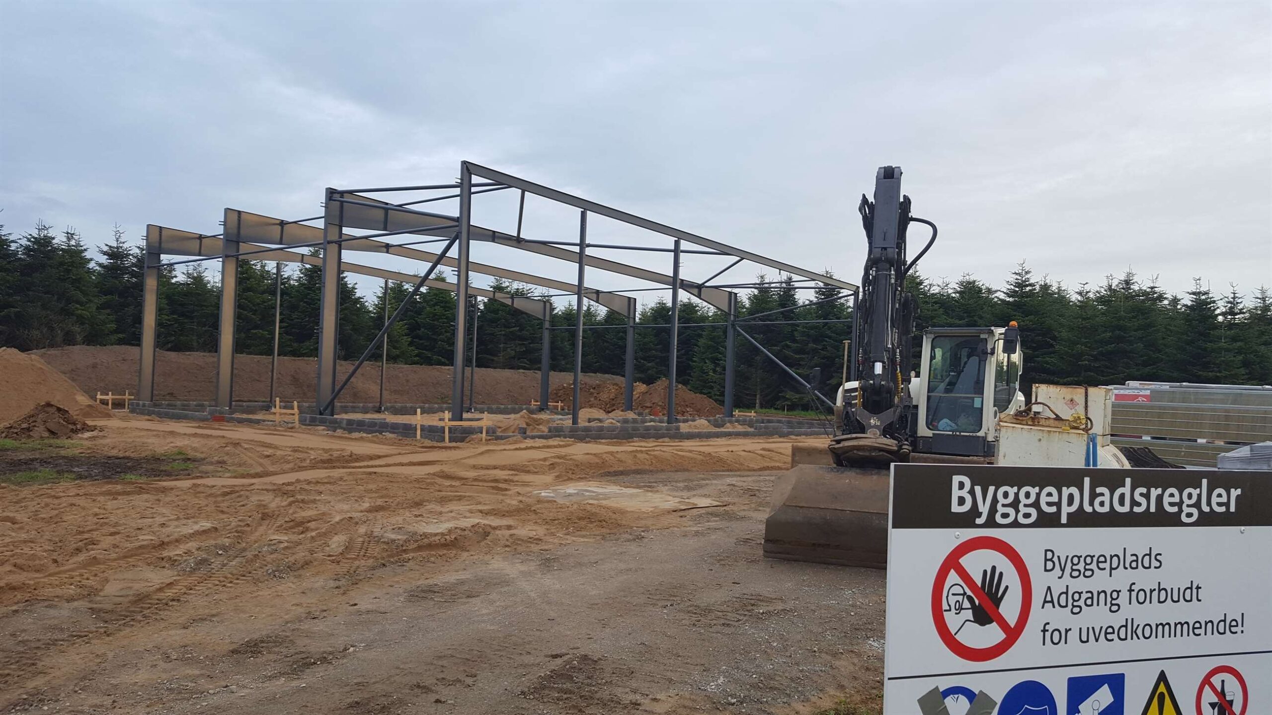 Der blev sat stokke i jorden, hvor bygningen skal placeres og aftalt gulvkote , så HM kan starte med at grave mandag.